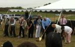 What a glorious day it was, and all the glory goes to Jesus Christ, the Sovereign Head of His church. After almost eleven years of watching our Lord accomplish His timeline and prepare His people at Calvary Baptist Church in Eau Claire, Wisconsin, groundbreaking ceremonies for a new ministry center were held on Sunday, August 12 at the conclusion of the morning worship service. Over 250 people gathered under the big tent on the 10-acre building site for two hours of worship music, ministry testimonies, prayer, and preaching. The challenge from God presented by Pastor John van Gorkom was taken from Genesis 11:1-9, where in the story of the Tower of Babel we discovered that the Lord requires right management, right motives, right materials, and the right mission.